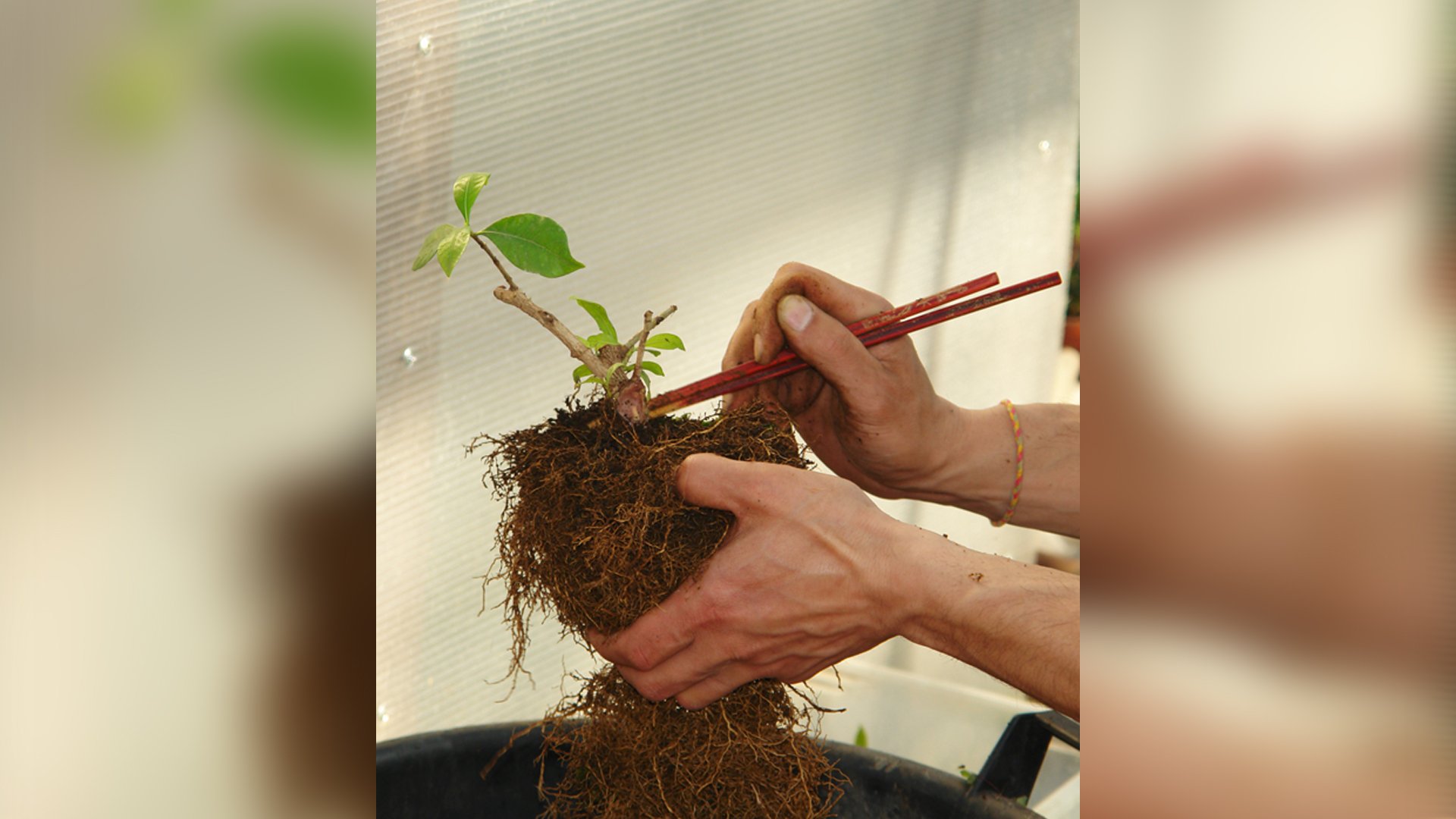 Ширина дерева: от самой длинной ветви по правой стороне до самой длинной ветви по правой стороне-половина или не много меньше высоты дерева. Искусство бонсай ставит своей задачей получение компактного и плотного дерева,что предполагает обрезку всех длинных и сильных корней на 1/2 - 1/3 длины,что способствует образованию мочковатой корневой системы с большим количеством корневых волосков,выполняющих функцию всасывания воды и питательных веществ. Особого внимания заслуживает расположение корней. Основные корни должны радиально отходить от ствола,располагаться равномерно во всех направлениях, простираясь в верхнем горизонте, образуя красивое оптическое начало дерева.