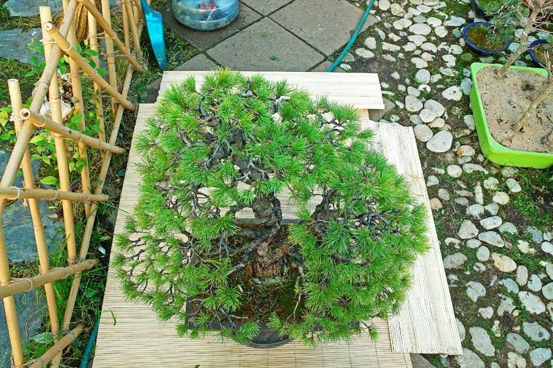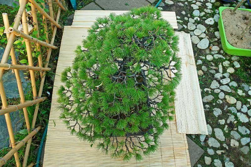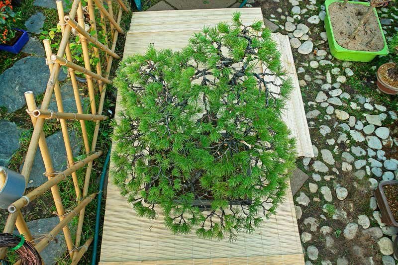 Вот как выглядит бонсай до формирования. Используя проволоку придаем веточкам нужную форму и направление. Общий вид сосны со всех сторон.